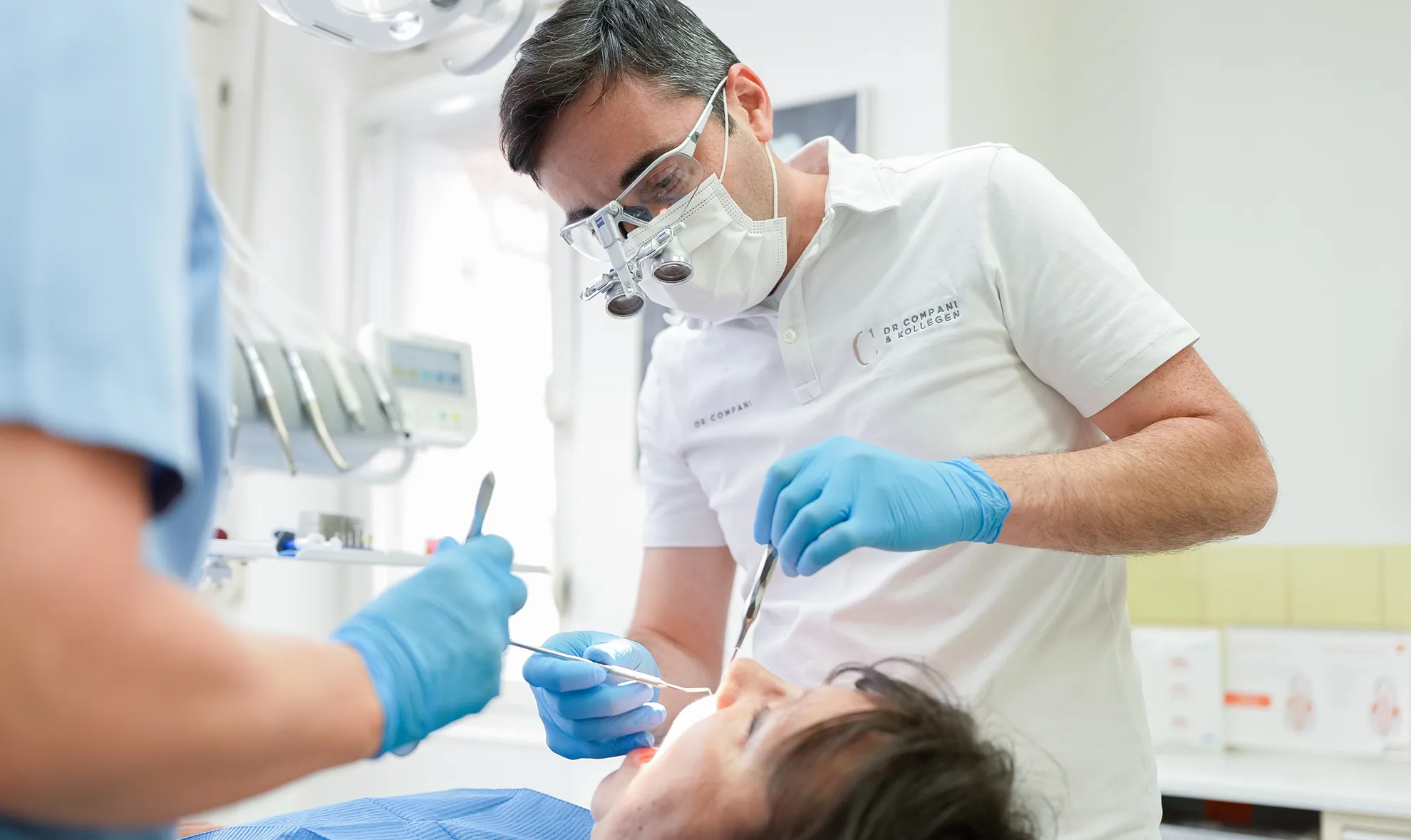 Wir sind die Zahnarztpraxis Dr. Compani & Kollegen in Darmstadt und bieten moderne Zahnmedizin für Kinder und Erwachsene. Unser Leistungsspektrum umfasst ästhetische Behandlungen, Prophylaxe, Implantate, Endodontie sowie hochwertigen Zahnersatz aus unserem praxiseigenen Labor.